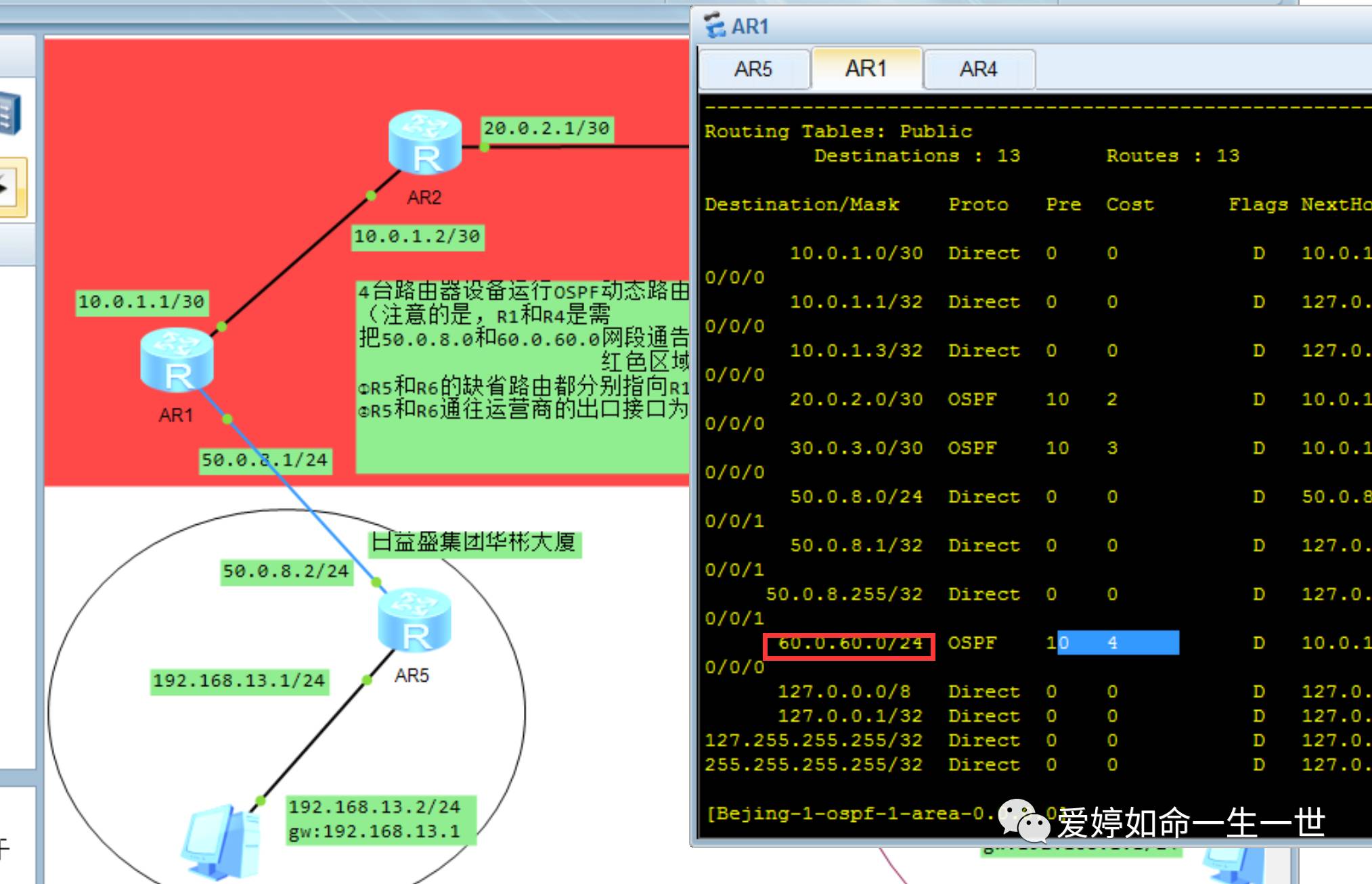 这样的话,我R1上通过OSPF算法就能看到60.0.60.0这个网段了: