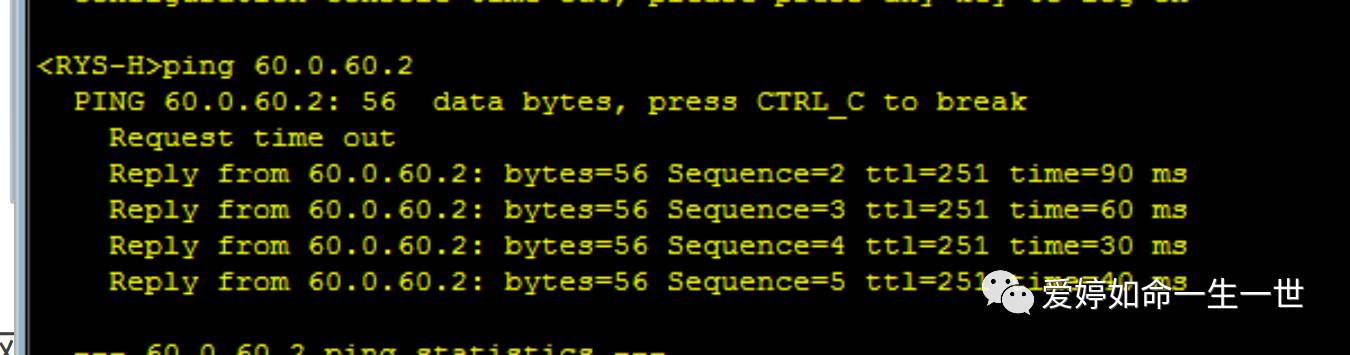 站在R5上ping R6的公网地址60.0.60.2,模拟两个职场公网地址间的互相通讯情况。