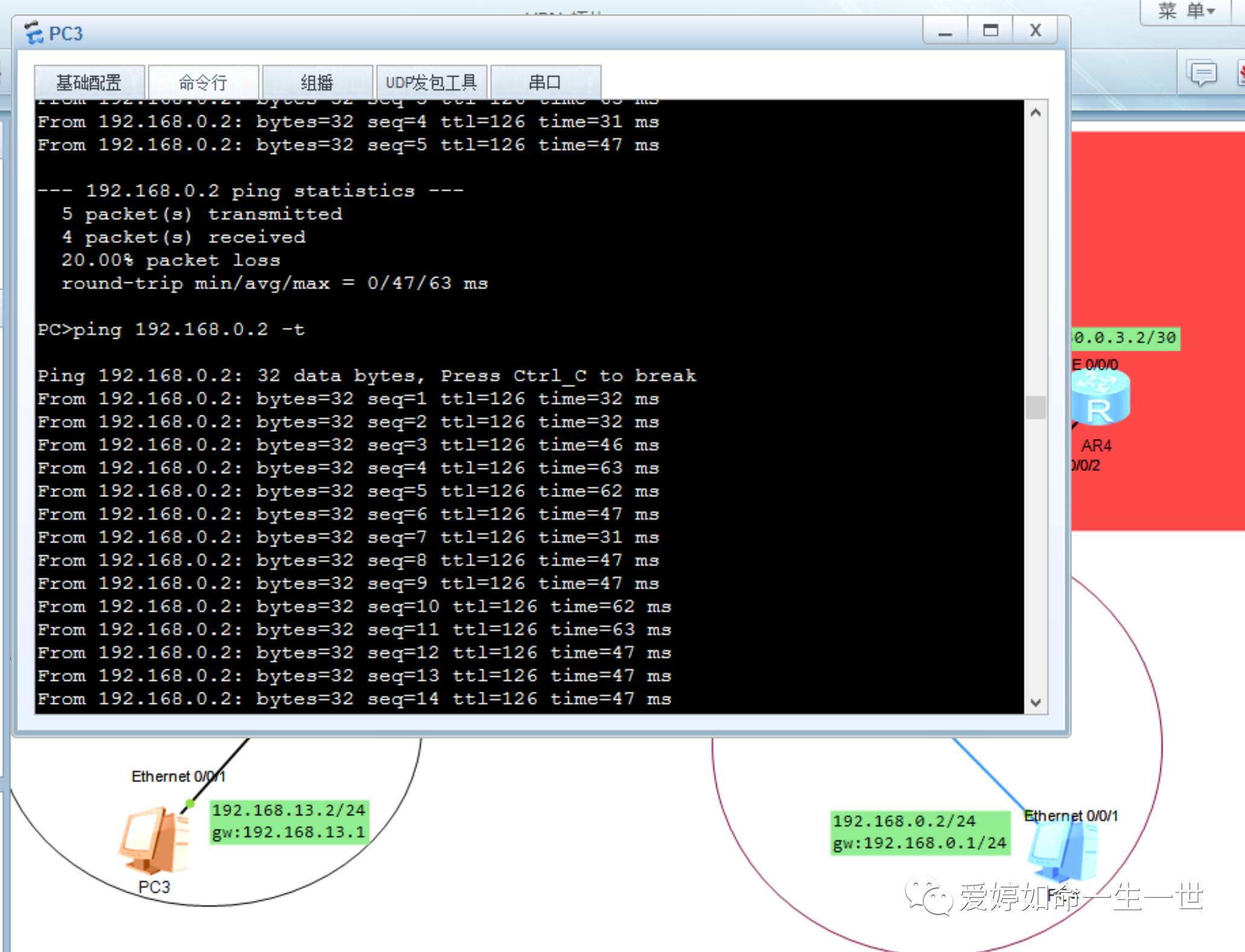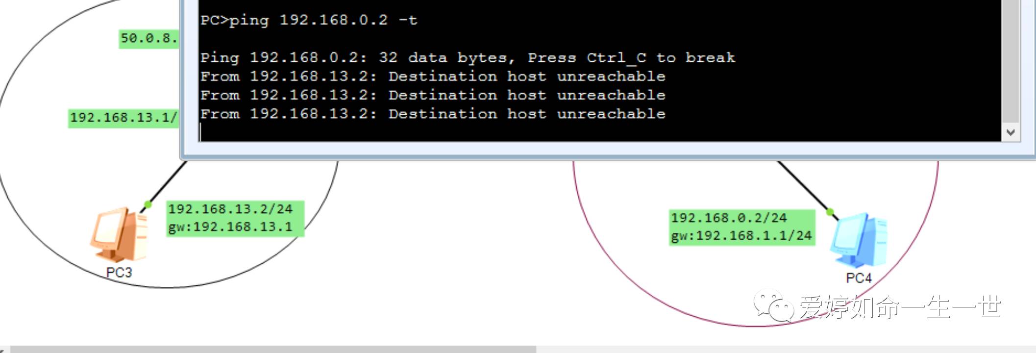 站在PC3上 ping PC4的私网地址192.168.0.2