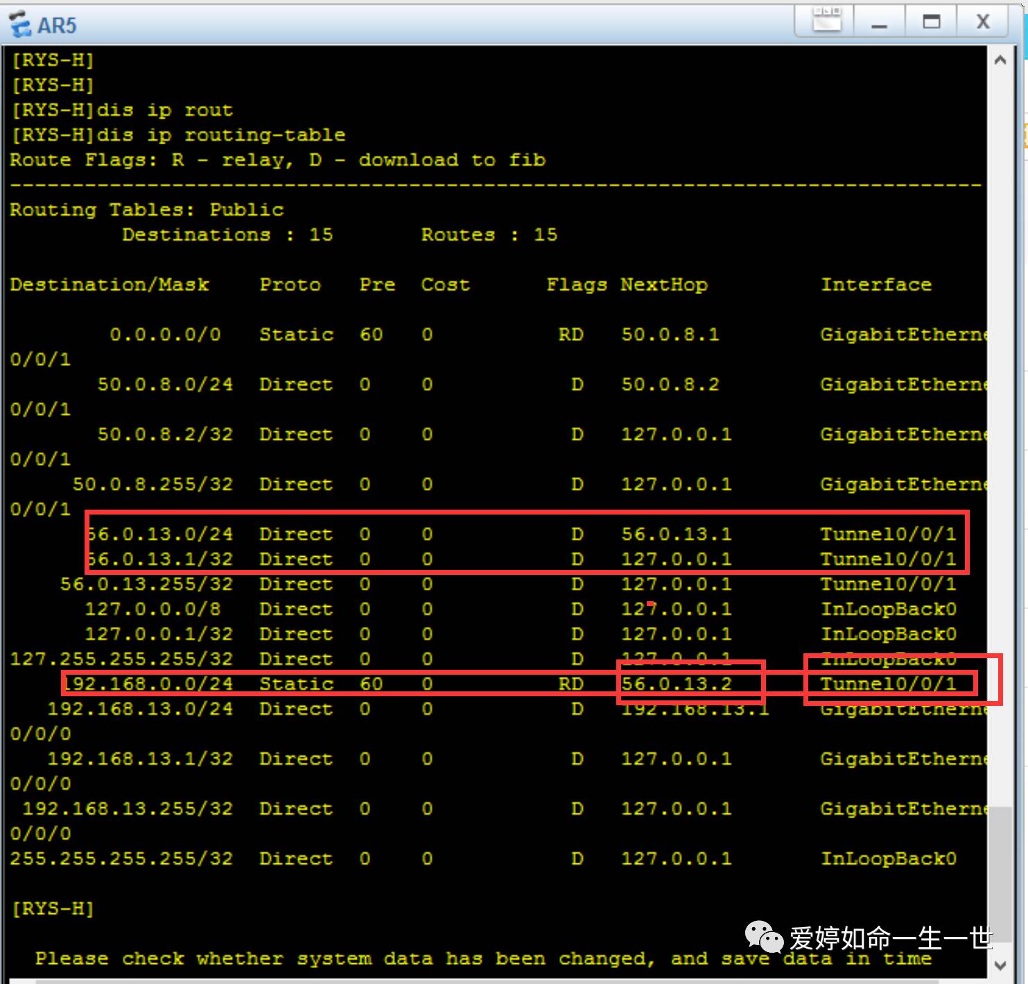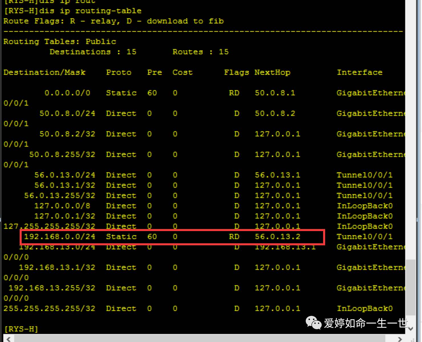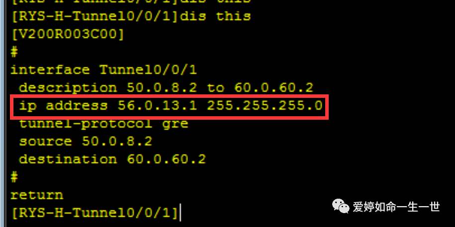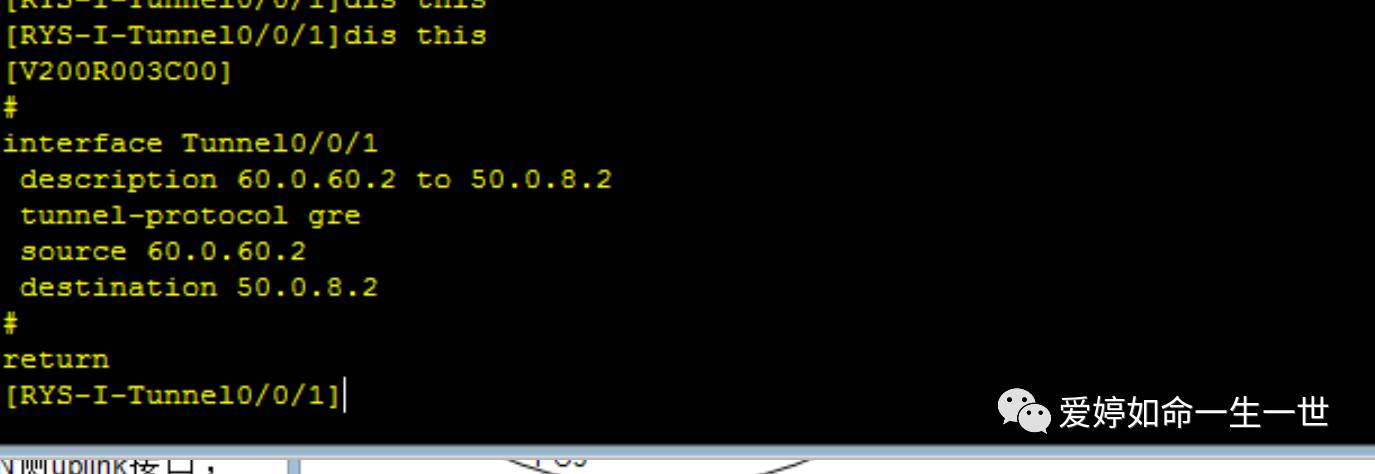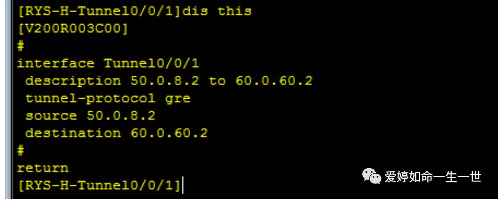 这里注意的是目标地址和描述信息的英文单词极为相似,以下是描述的配置:[RYS-H-Tunnel0/0/1]description 50.0.8.2 to 60.0.60.2