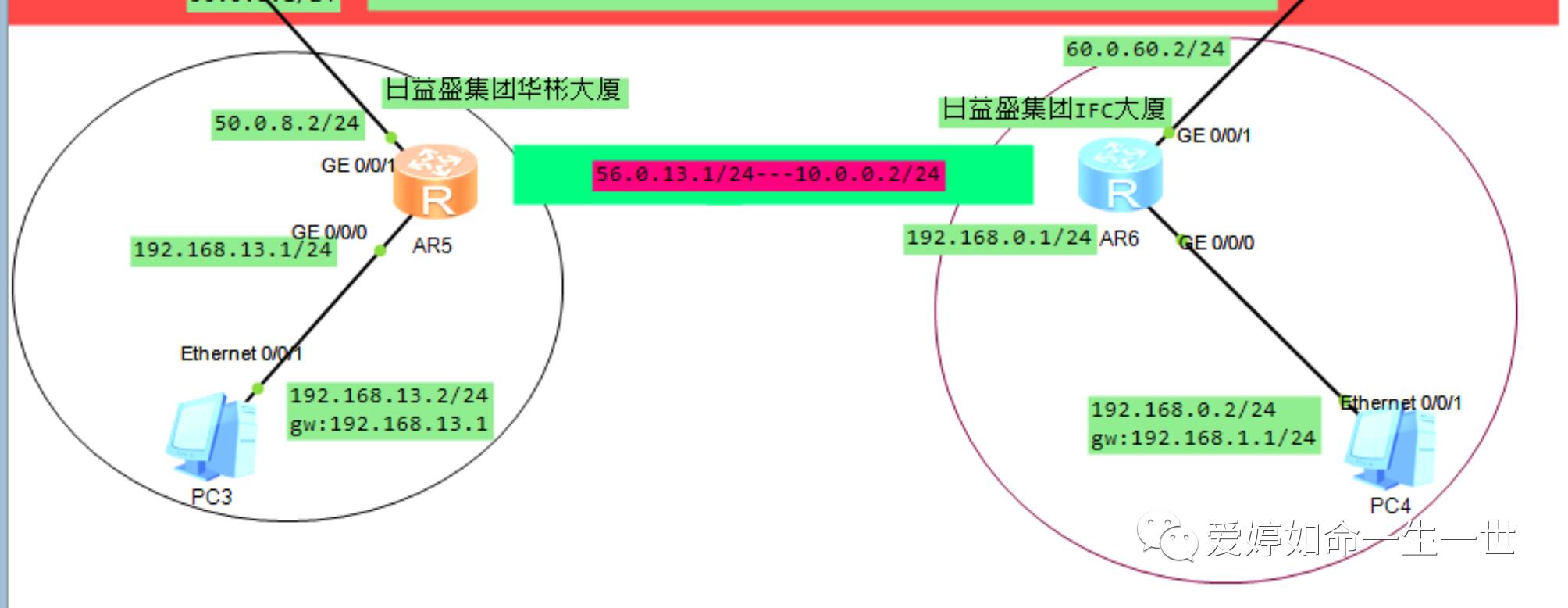 首先,依照拓扑,我需要在两个职场的出口路由设备上做配置: