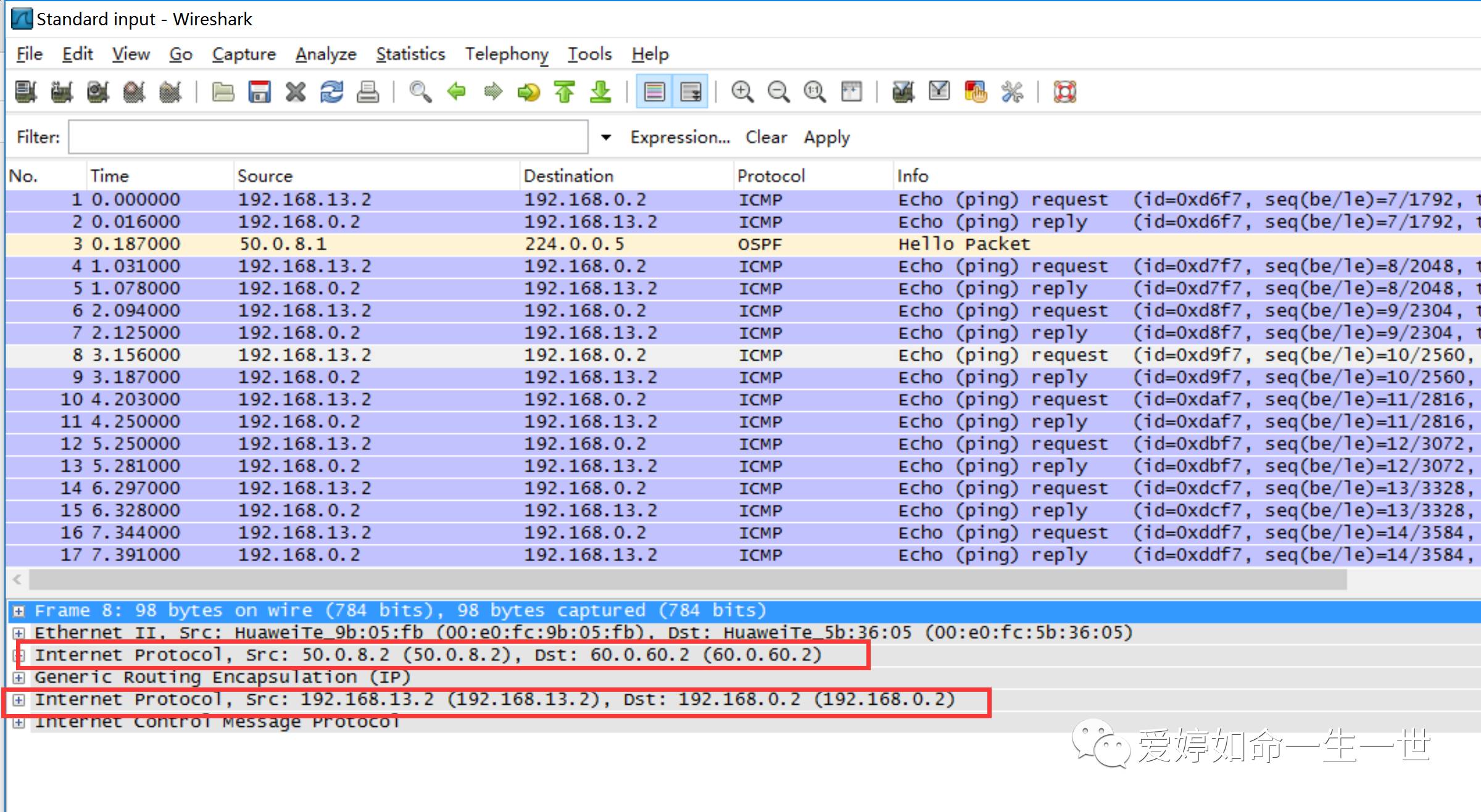 从抓包上可以观察的到:在数据包文中存在两个数据IP包头
