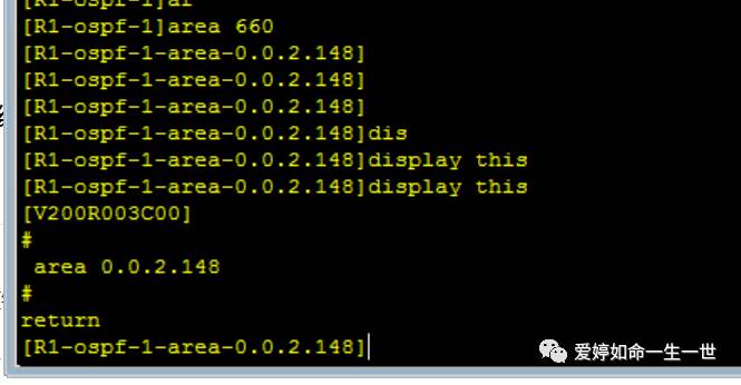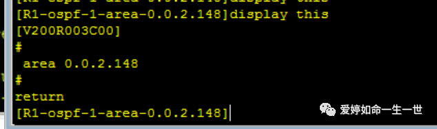 可以返现,在创建完为1的区域后,观察到的配置却是area 0.0.0.1