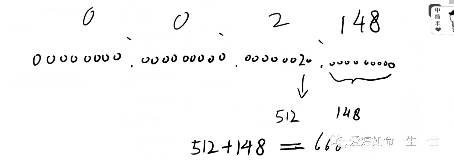 图解如下:已知区域数值的IPV4格式为0.0.2.148,后面8个二进制明显知道是148,那么这个2是二进制往前推一位255*2=512+148=660