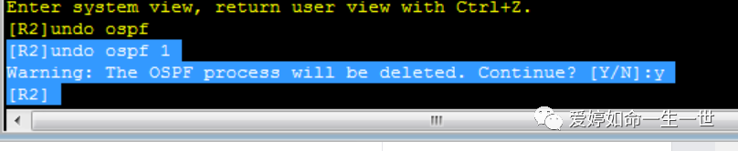Warning: The OSPF process will be deleted. Continue? [Y/N]:y