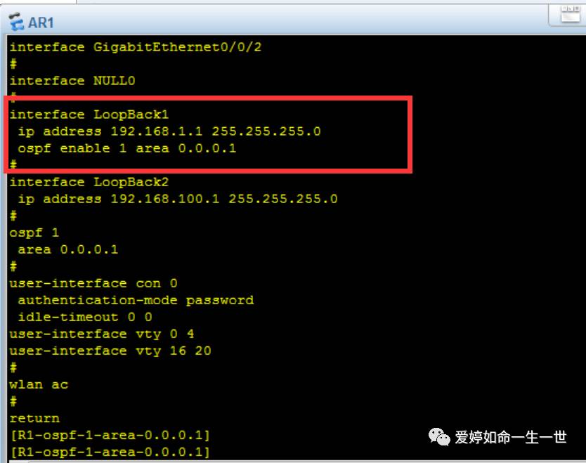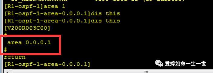 可以返现,在创建完为1的区域后,观察到的配置却是area 0.0.0.1