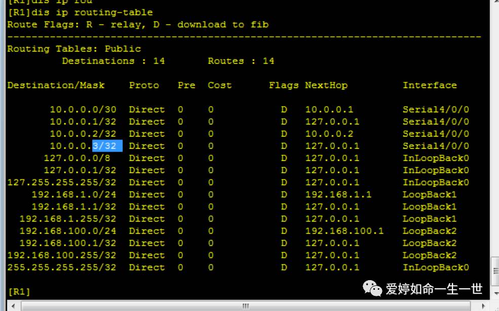 [R1-ospf-1-area-0.0.0.1]network 10.0.0.0 255.255.255.252