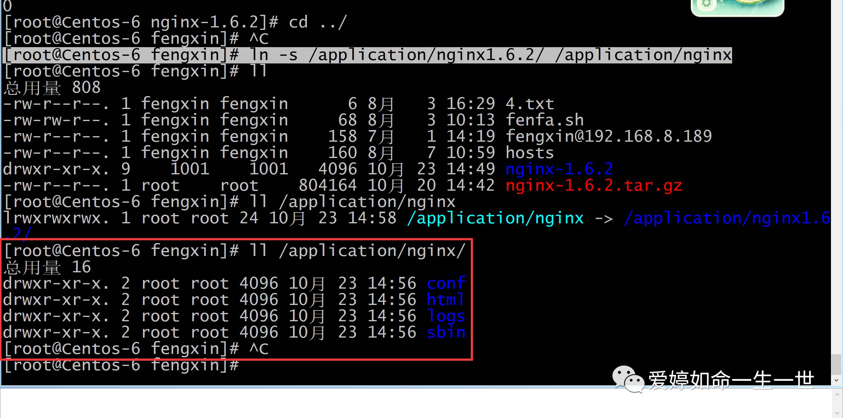 [root@Centos-6 fengxin]# ll /application/nginx/