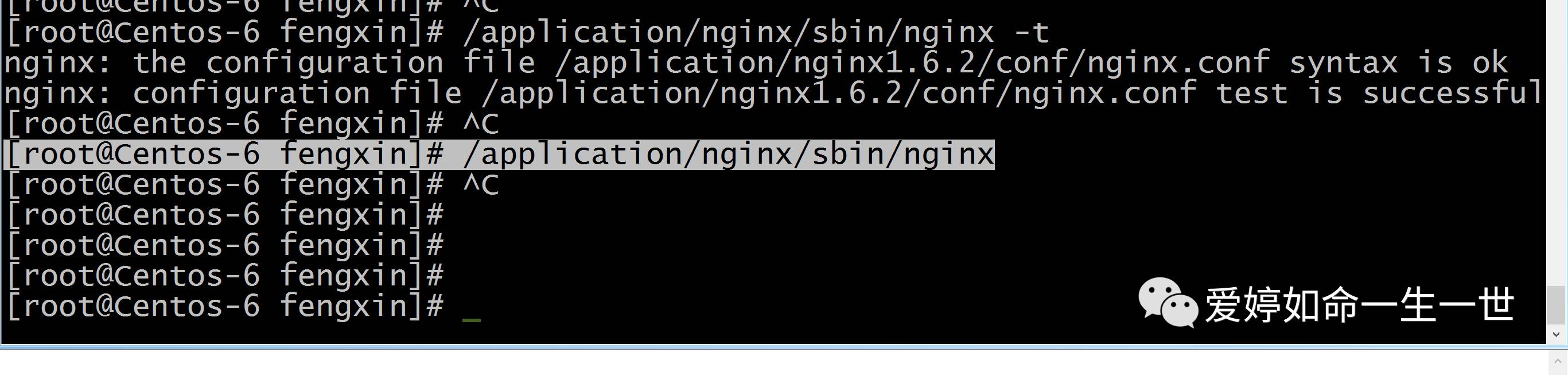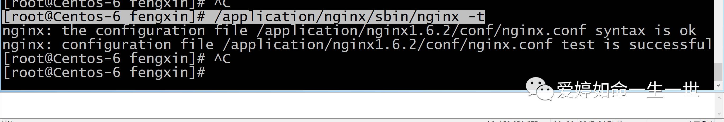 [root@Centos-6 fengxin]# /application/nginx/sbin/nginx -t