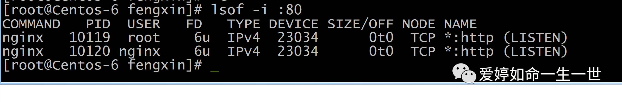 [root@Centos-6 fengxin]# lsof -i :80