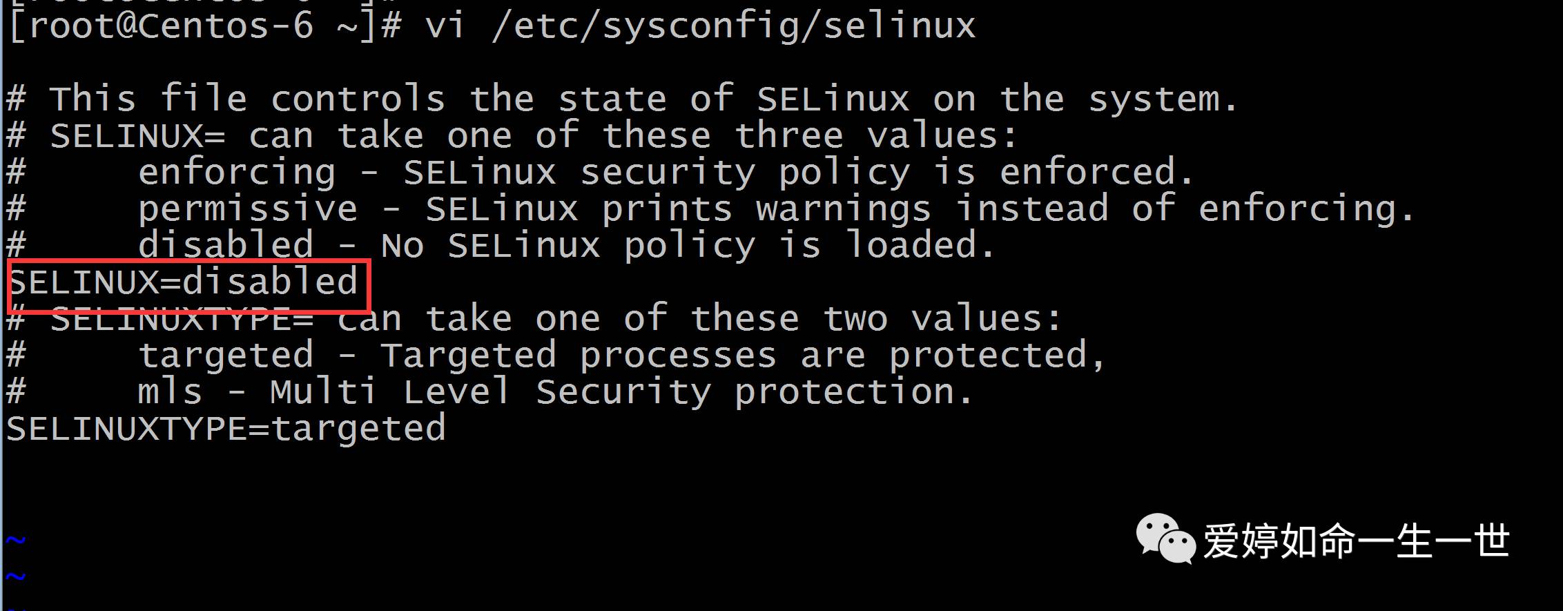 [root@Centos-6 ~]# vi /etc/sysconfig/selinux