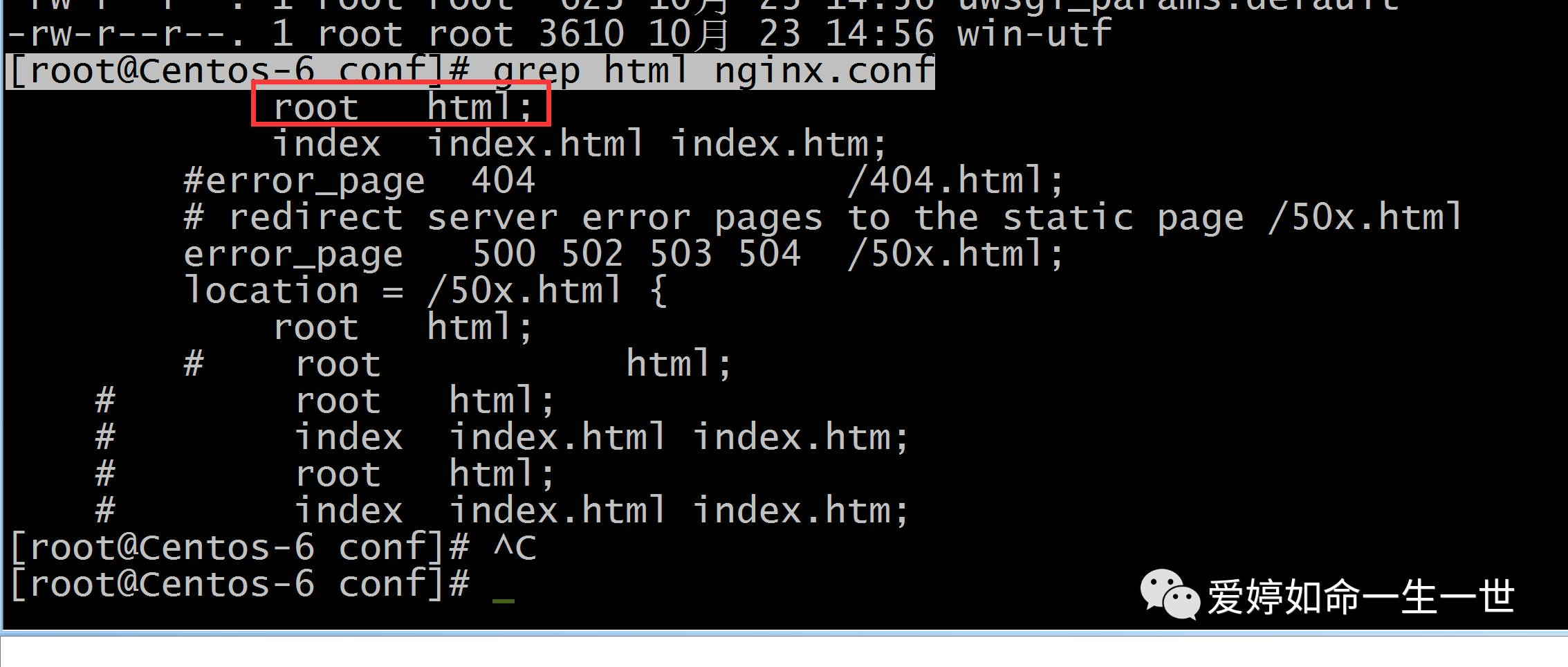 [root@Centos-6 conf]# grep html nginx.conf