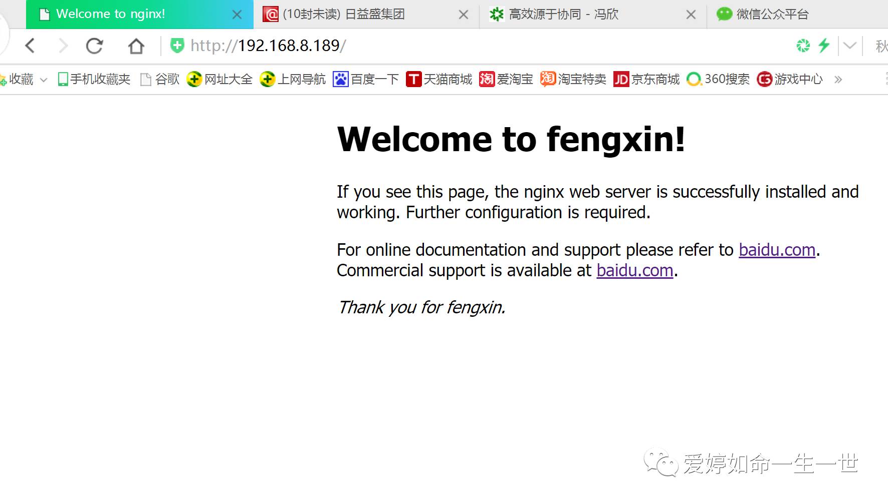 ②在客户端浏览器上刷新IP地址后,显示结果如下:你要是点击baidu.com就直接跳转到百度页面了。