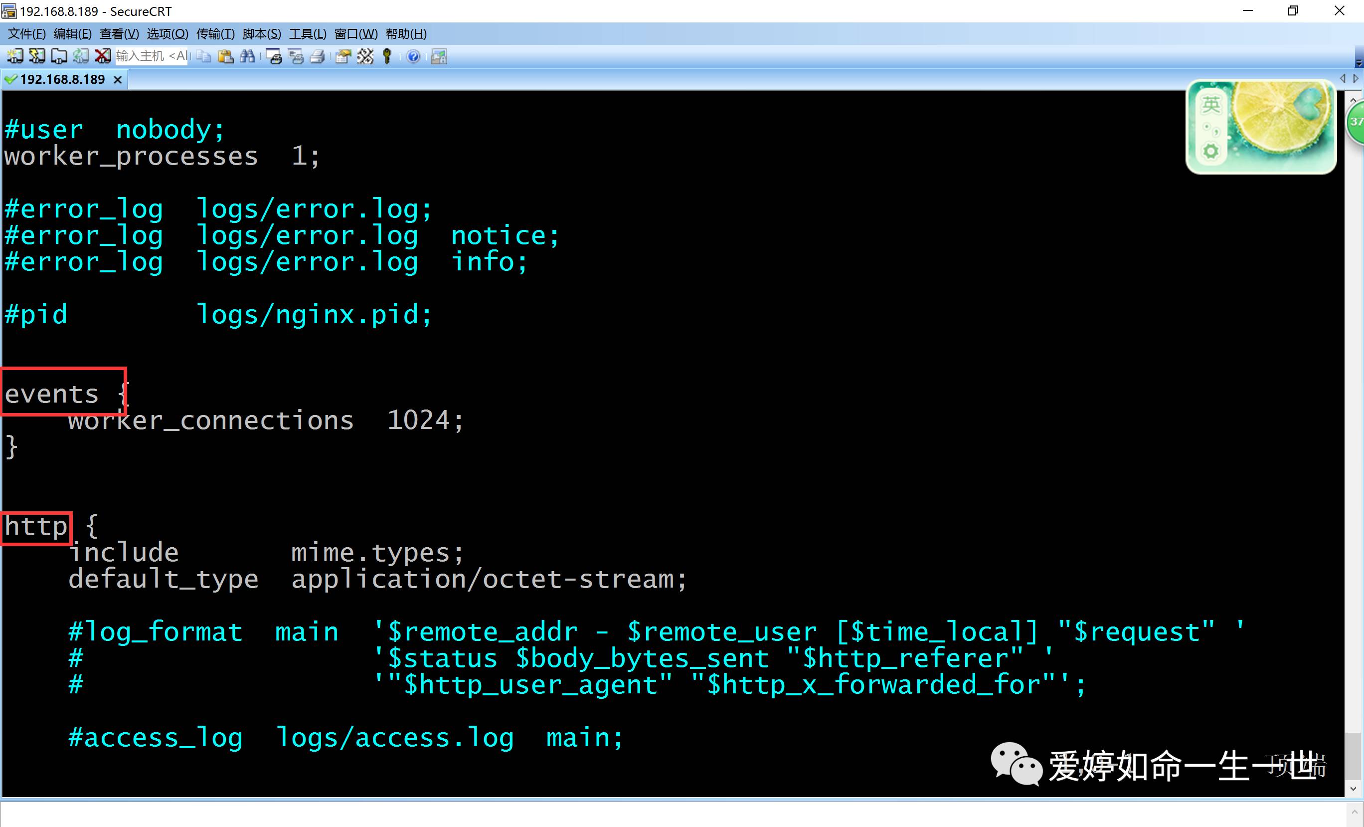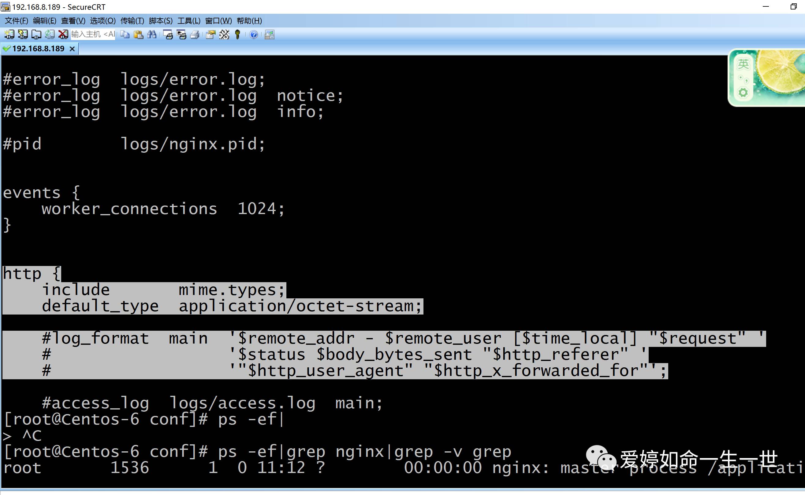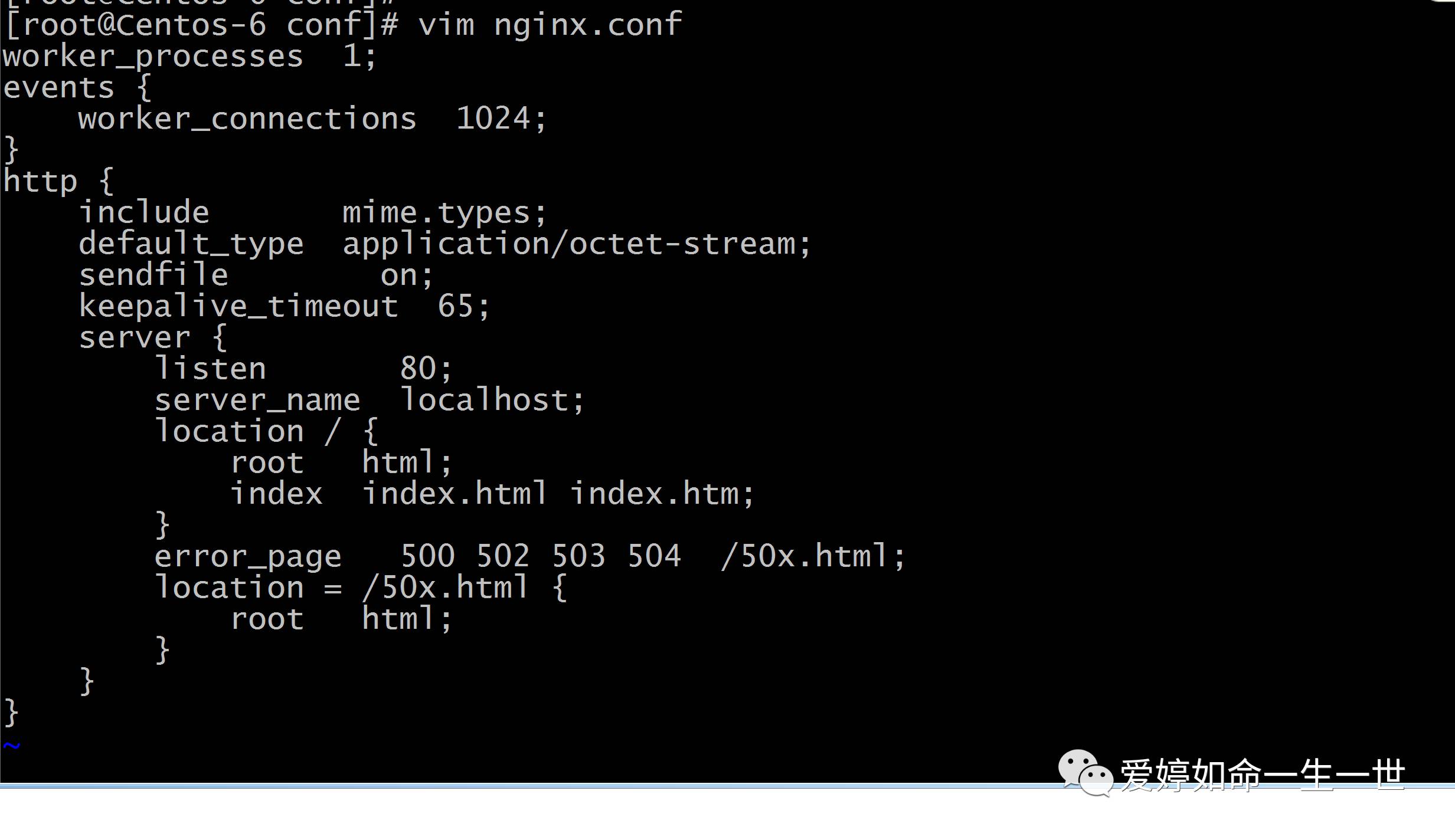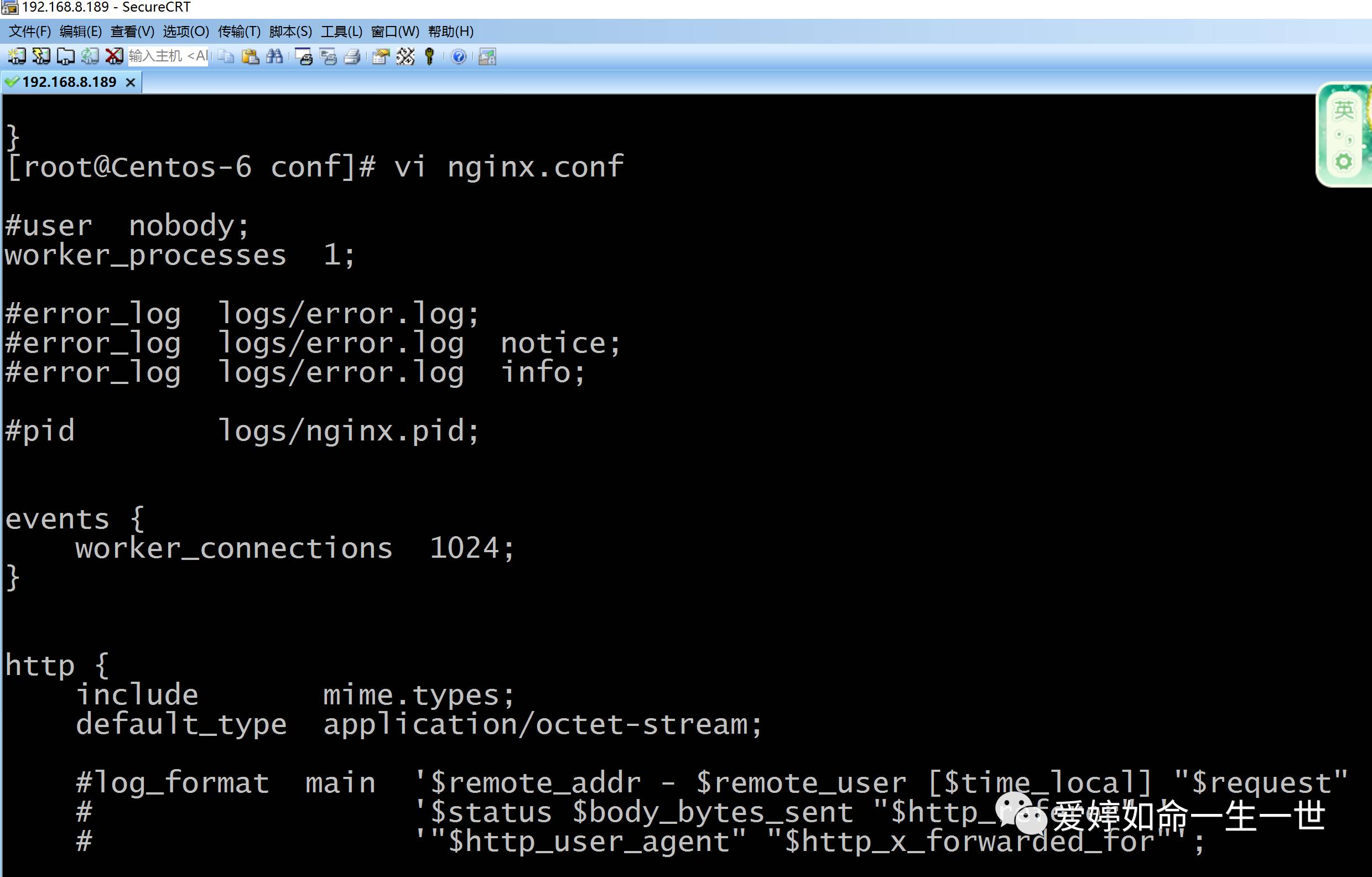 [root@Centos-6 conf]# egrep -v "#|^$" nginx.conf >n.log
