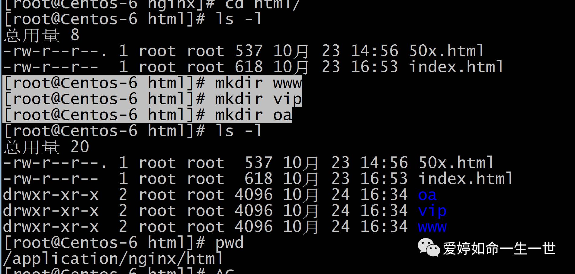 [root@Centos-6 html]# mkdir www