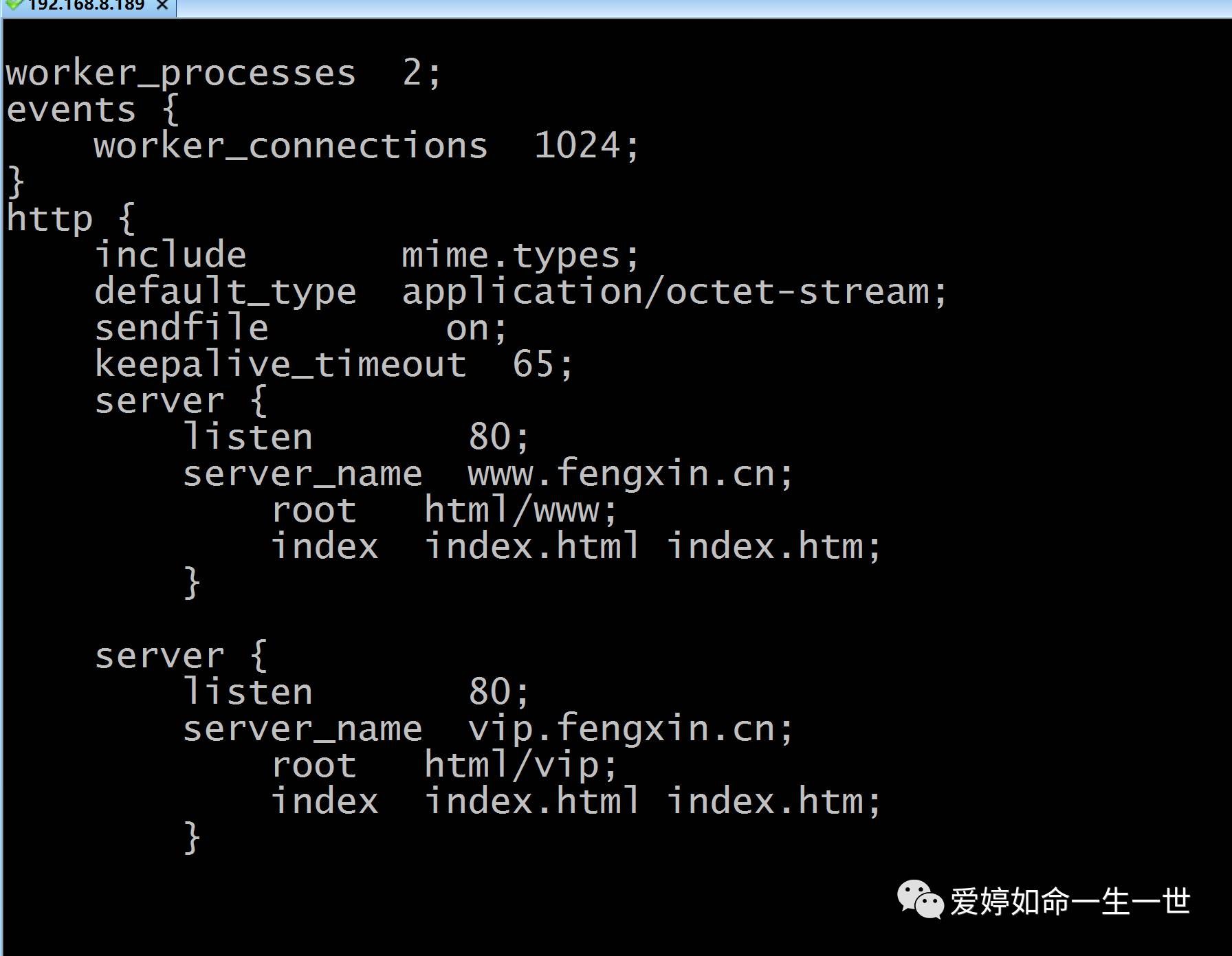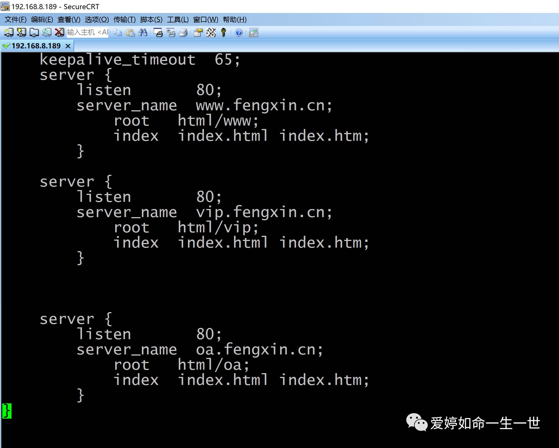 这就是涉及到Nginx的虚拟主机,我前文总结过Nginx的一个虚拟主机是由一个server标签构成的。