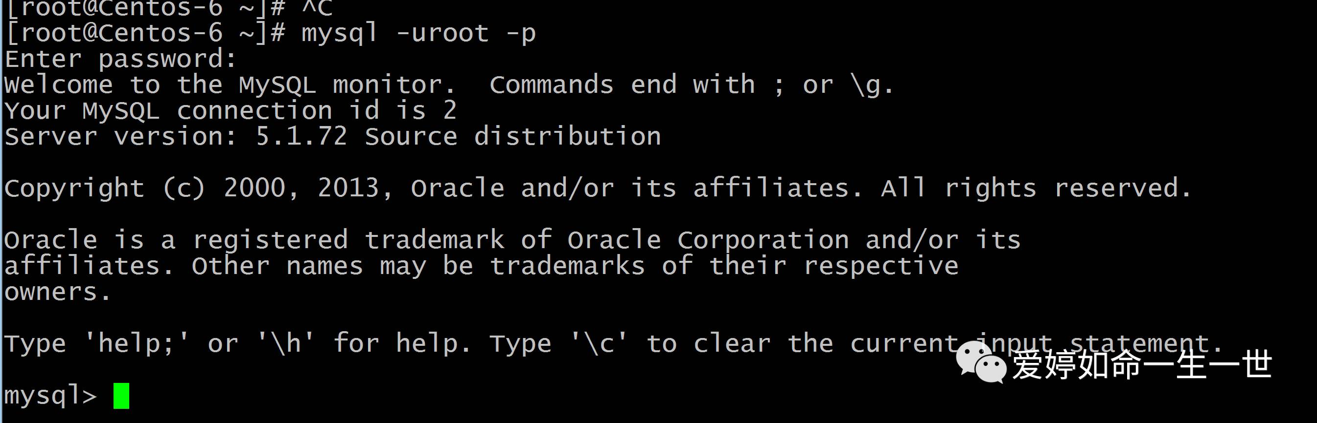 [root@Centos-6 ~]# mysql -uroot -p (密码这里我设置的是123.com!)