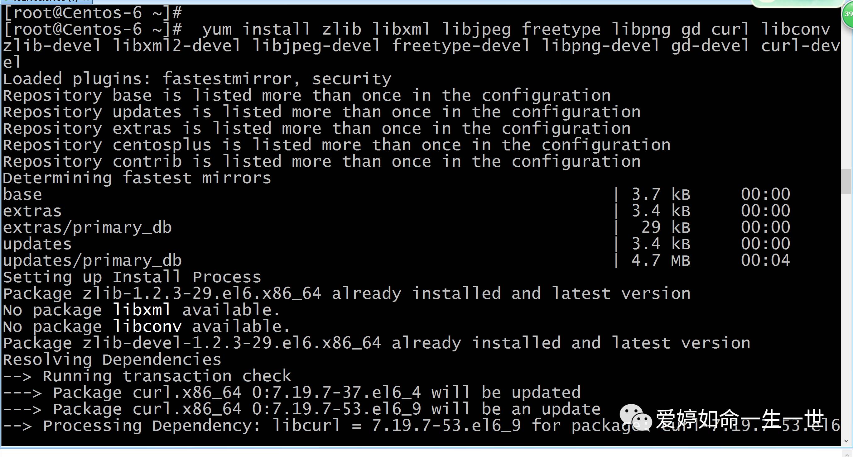 [root@Centos-6 ~]# yum install zlib libxml libjpeg freetype libpng gd curl libconv zlib-devel libxml2-devel libjpeg-devel freetype-devel libpng-devel gd-devel curl-devel