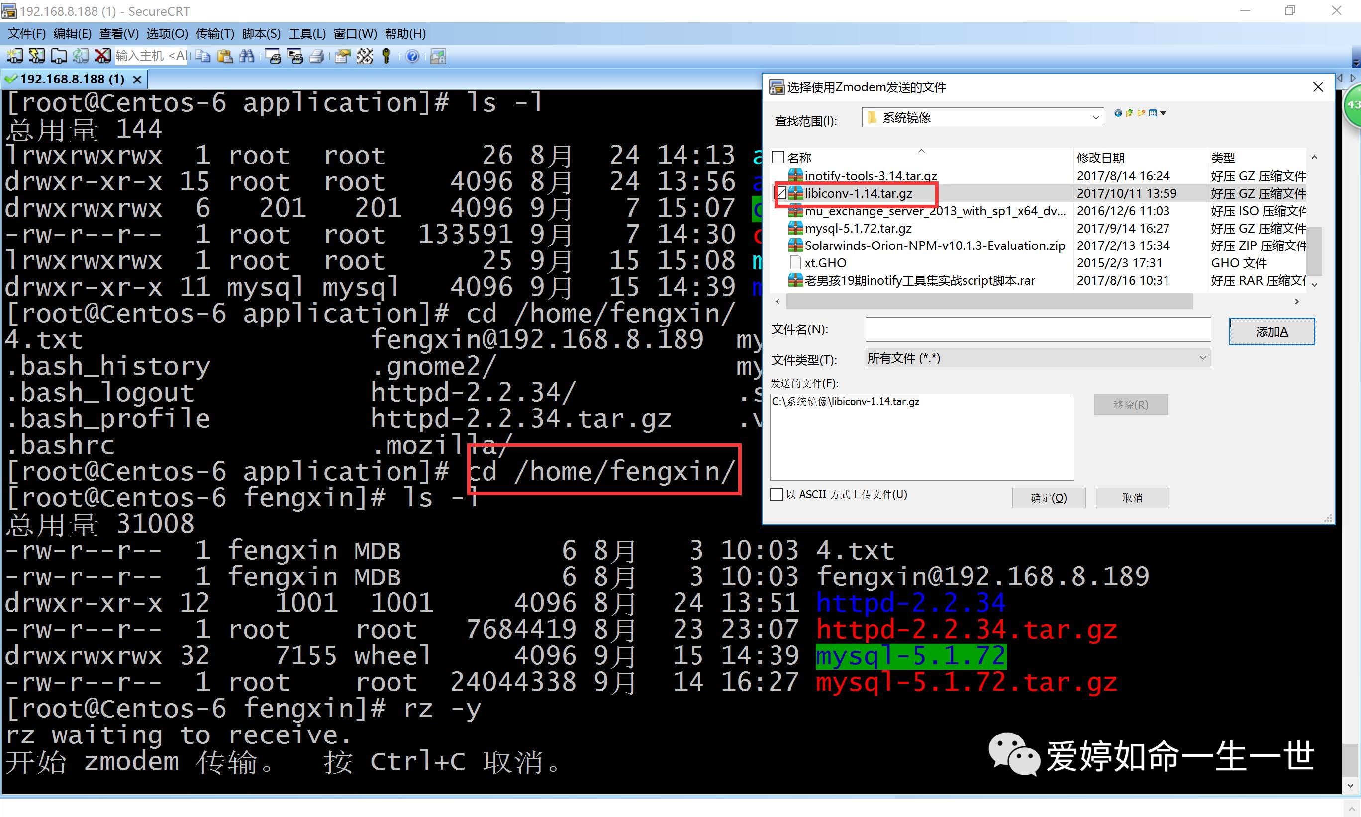 上传完毕之后,我需要对libiconv-1.14这个文件进行解压: