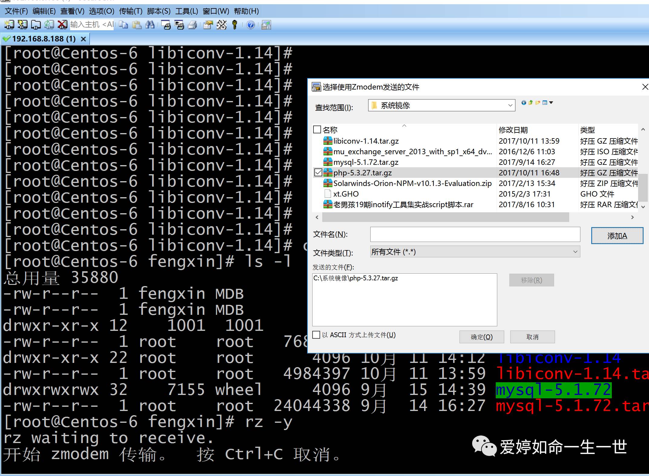 下载好5.3.27,就可以上传到本地进行安装了。(后面的28 29版本区别很小,你也可以下载其他的来做此次实验,只要不换大版本,基本上的区别我们是看不到的!)