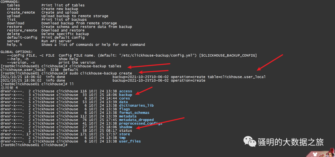sudo clickhouse-backup restore 2021-07-25T23-14-50经过测试,测试失败,所以还是使用手动来进行恢复