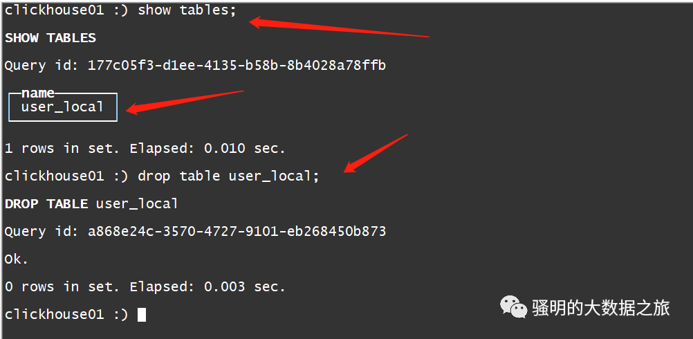 echo 'drop table clickhouse.user_local' | clickhouse-client