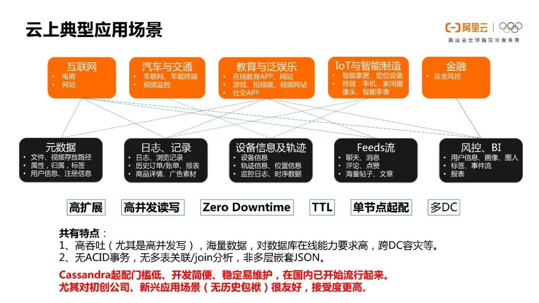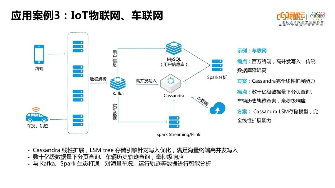 第三点就是IoT物联网和车联网。他们其实也是看中了Cassandra完全在线的扩展能力以及高并发的写入。