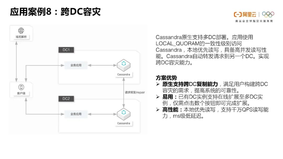 因为用起来非常简单,开发起来也非常简单,成本也非常低,并且没有起配的门槛。最后Cassandra还有一个特点就是多DC,大家也都很认可它原生的多DC的容灾能力。