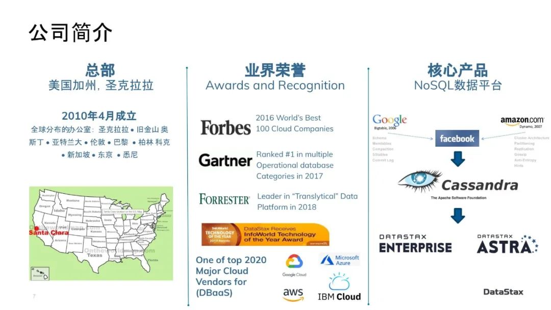 我刚才提过,DataStax是2010年4月成立的。我们现在的总部是在美国加州Santa Clara,但是在全世界四大洲十一个城市都有办公室。