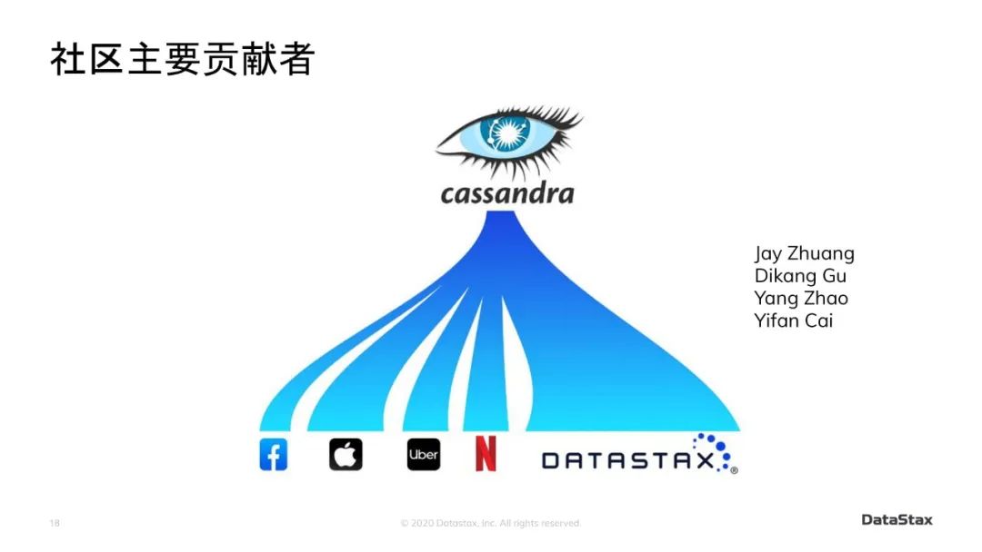 在Cassandra中文社区2021年开年活动中,来自DataStax的邓为老师分享了与Cassandra相关的历史故事、DataStax在Cassandra的发展进程中所扮演的角色以及Cassandra国际社区的现状。