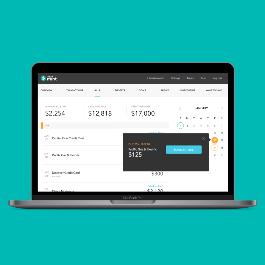 Mint Bills在2008年推出,是第一代iPhone上最初发布的500个应用程序之一。2014年6月,该公司被Intuit Inc.以3.6亿美元的价格收购。
