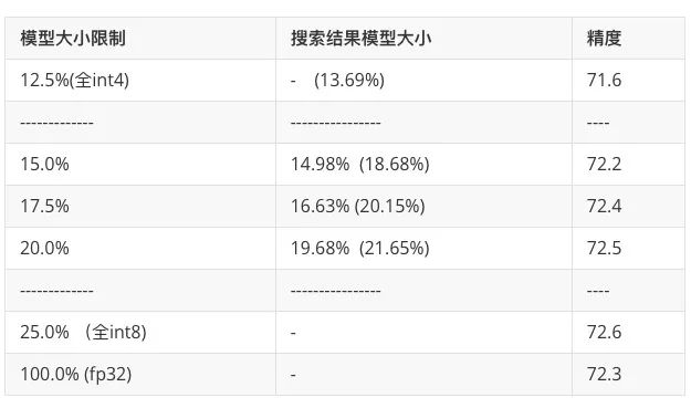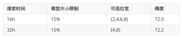 模型限制下的搜索位宽结果和精度,{2,4,6,8}
