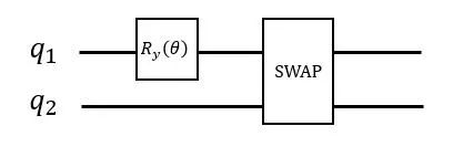 RY = np.array([[np.cos(theta / 2), -np.sin(theta / 2)], [np.sin(theta / 2), np.cos(theta / 2)]],dtype=np.complex128)RY_twoqubits = np.kron(np.array([[1,0], [0,1]]), RY)SWAP = np.array([[1, 0, 0, 0], [0, 0, 1, 0], [0, 1, 0, 0], [0, 0, 0, 1]], dtype=np.complex128)