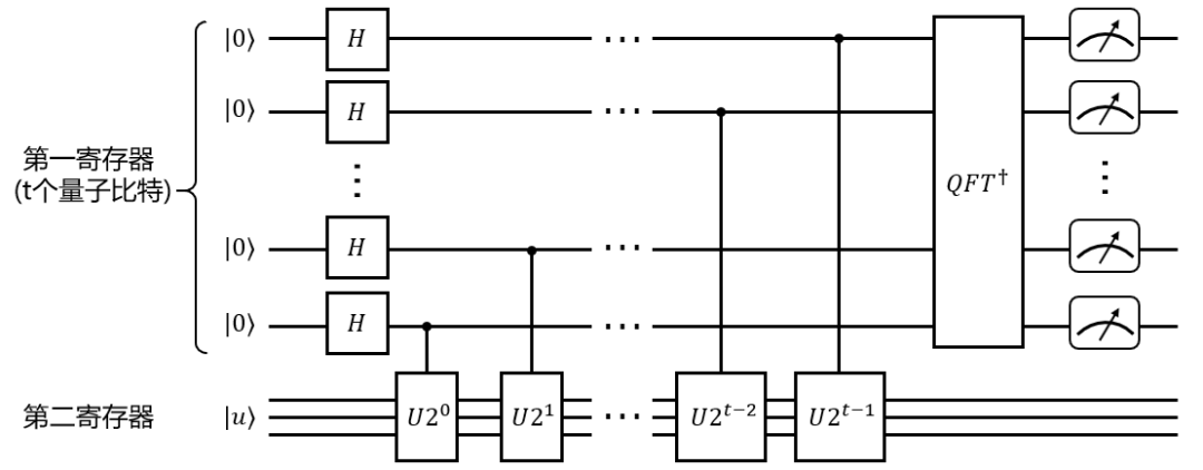 上。相位估计算法主要分为三步:Hadamard门操作,对第二寄存器连续进行