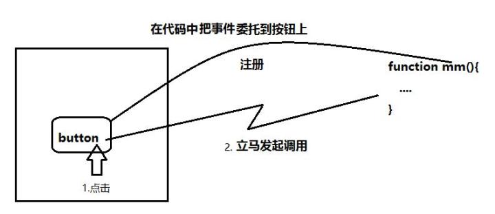 所以简单来说,就是把一个写好的函数通过事件委托到按钮上,当用户点击按钮后,就会调用那个函数,函数里的代码就会执行。