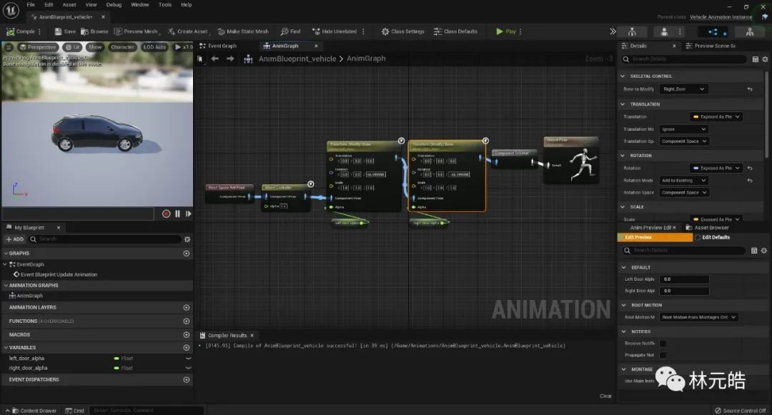 还需要修改的还有动画蓝图,要将Wheel Handler更改为Wheel Controller,来控制车轮动画。由于提前禁掉"PhysXVehicles"模块,这里只能重新做一遍。