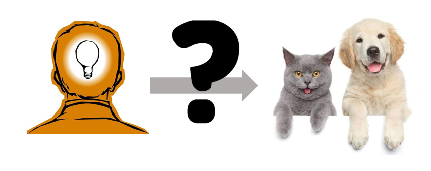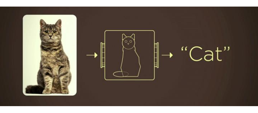 人类可以轻松地分辨出左侧是猫右侧是狗,但是让你具体说出你是究竟根据什么来分辨出猫与狗的,你是不是突然发现这个问题很难回答?以两图为例,它们都有五官与体毛,并有基本相同的姿势。有人可能会说猫的体毛为灰色并且耳朵竖立,但我们可以找到很多体毛为灰、耳朵竖立的狗,还可以找到很多不是这种形态的猫。而且我们应该怎么给计算机量化描述体毛为灰色、耳朵是立起来的这种特征?这个规则很难编写。