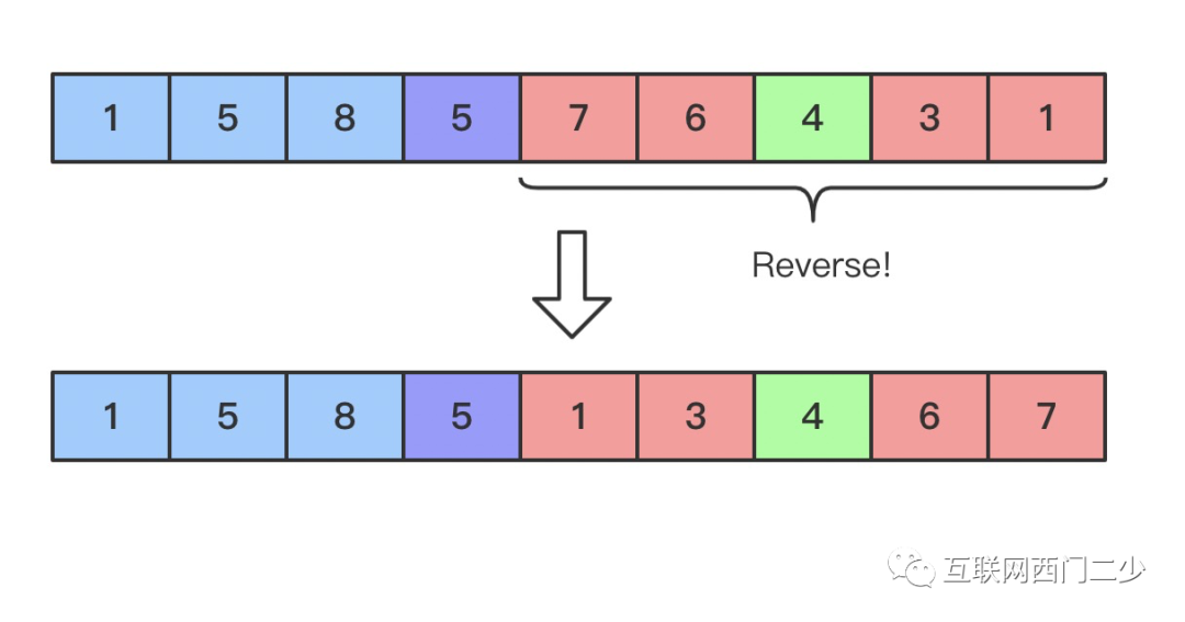 如果不存在下一个更大的排列,则将数字重新排列成最小的排列(即升序排列)。