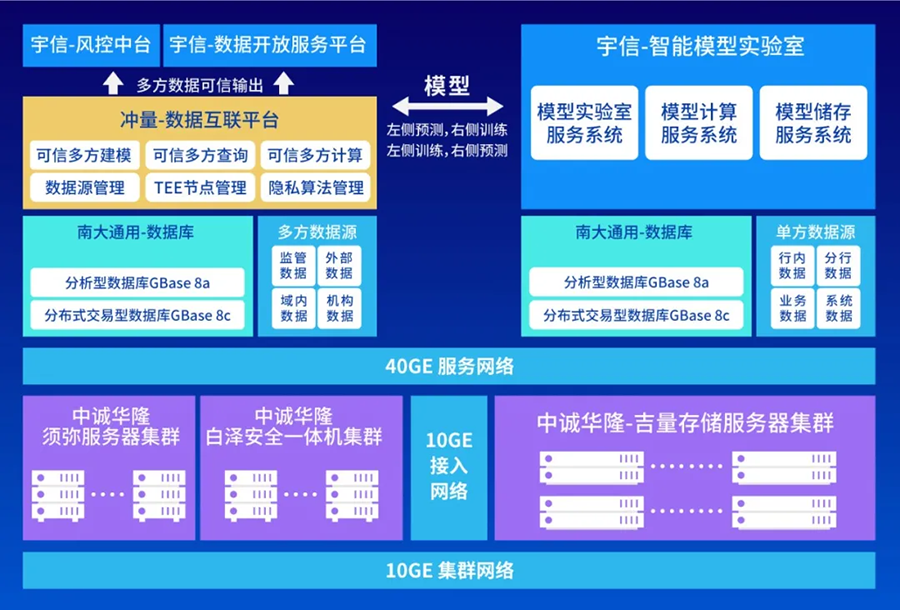 2020-2022年是我国安全可控体系发展最重要的3年,以产业合力推进行业关键领域的自主创新是一条更为高效的路径。 作为此次大会的重要环节之一,宇信科技、南大通用、中诚华隆、冲量在线四家产业龙头企业对外联合发布了国产化金融企业数据互联一站式解决方案,为金融机构提供从芯片、整机、数据库到软件的全数据链路国产化能力。 目前这一方案在金融数据领域不仅实现全国产化,且已经具备全面的领先性。 首先,该方案是全数据链路国产化一站式解决方案。其提供包含完全自主可控的申威3231芯片和GBase系列数据库在内的、从基础软硬件到上层应用完整的解决方案,可一站式解决企业数据互联的需求,涵盖金融的风控、营销等多方面场景。 其次,该方案拥有丰富的数据场景。通过可信执行环境、联邦计算等隐私计算能力,盘活多方数据资源;通过对多方数据的可信建模、可信计算等能力提供多方数据的价值信息,可支撑模型实验室、风控中台等业务能力。 再次,该方案可保障多方数据计算安全。通过宇信科技智能模型实验室训练生成的模型,可以利用冲量数据互联平台的基于TEE的多方安全计算的能力,在第三方数据源上做推断和预测,模型实验室生成的模型和第三方数据集都在TEE中执行,保证计算环境的安全和可信。 值得一提的是,宇信科技是国产金融数据中台的引领者。本次联合解决方案中的智能数据模型实验室、数据开放服务平台以及风控中台等产品及解决方案是宇信科技围绕金融数据价值挖掘与数据共享服务自研的核心能力平台。据了解,目前宇信科技数据中台产品家族拥有超30款产品,都是基于自有的分布式、微服务技术架构研发完成的,完全自主可控。全系数据中台产品涵盖公共基础能力、数据资产治理、数据服务应用、数据价值运营以及数据效能提升等数据五大体系建设,全面满足数字化转型对基础数据底座与数据运营能力的需求。