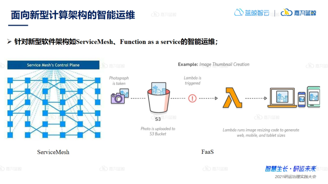 新技术必然带来新的困难,为了克服这些难题,又会衍生出相应的技术手段。早期在面临故障时,我们考虑的是如何减少平均失效时间MTTF,再降低MTBF、MTMF平均失效间隔时间,这也是智能运维的基础解决思路。在应对云原生系统时,AIOps作为算法驱动的运维,就成为了解决这类问题的高级手段。