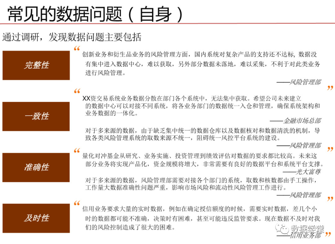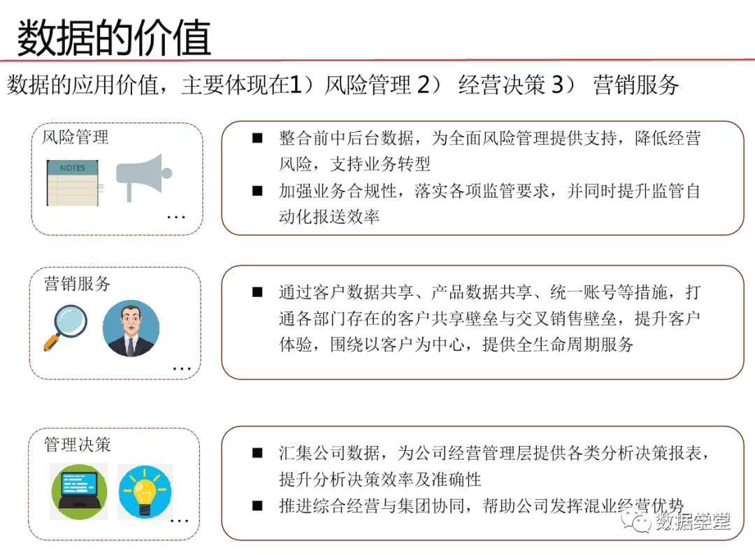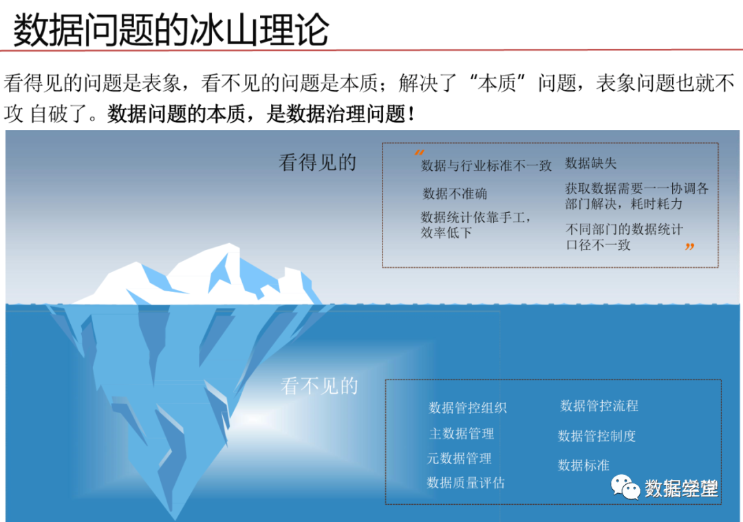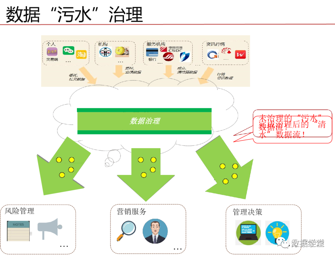 数据治理其实是一种体系,是一个关注于信息系统执行层面的体系,这一体系的目的是整合IT与业务部的知识和意见,通过将流程、策略、标准和组织的有效组合,对企业的信息化建设进行全方位的监管,需要企业高层的授权和业务部门与IT部门的密切协作。目标是保证数据的有效性、可访问性、高质量、一致性、 可审计和安全性。