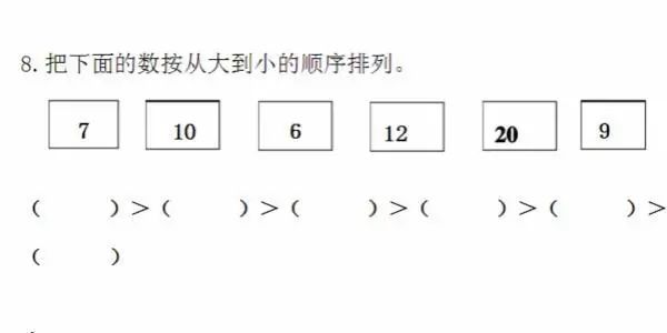 排序是计算机内经常进行的一种操作,其目的是将一组“无序”的记录序列调整为“有序”的记录序列。比如下面这个小学数学题目,首先理解数字需要从大往小排列,那么一般做法是选出最大数,填写到第一个括号内,然后,再从剩余未排序数字中继续寻找最大数,然后放到已排序数字的后面,以此类推,直到所有数字均排序完毕。