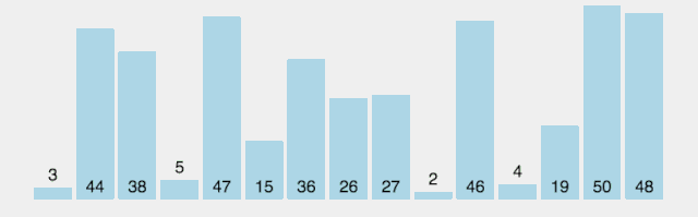 这个算法的名字由来是因为比较后的元素(大或小)会经交换慢慢“浮”到数列的顶端。