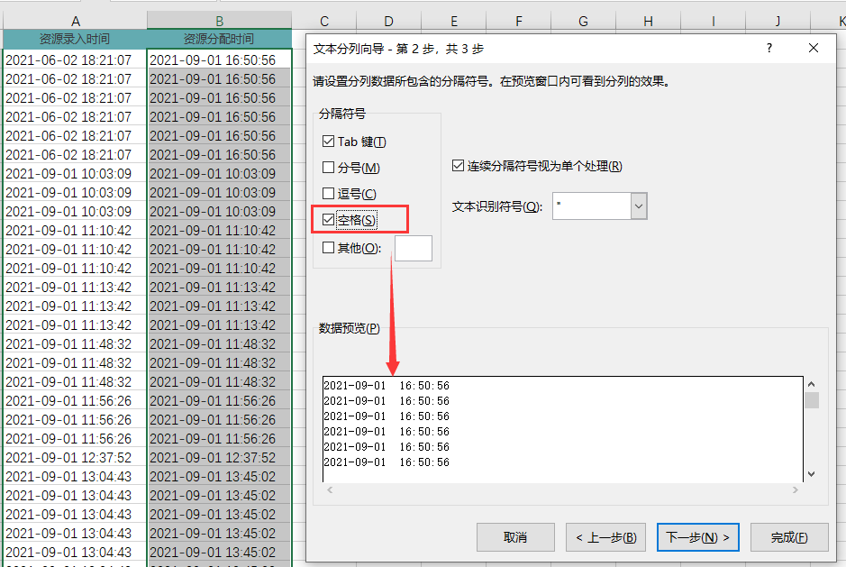 分列时用的也是空格符号做的分隔符导致的,那么用python