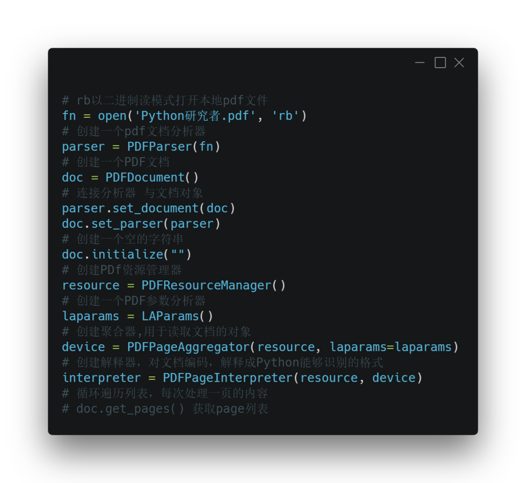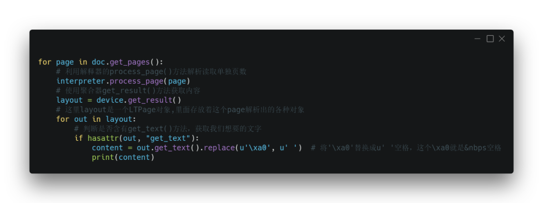 上面代码是读取pdf文件,并把每一页内容放到doc.get_pages里面。