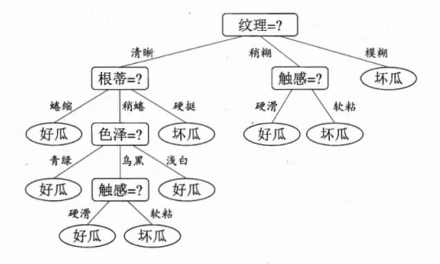 再比如我们可以用一个决策树来判断一个西瓜好瓜还是坏瓜: