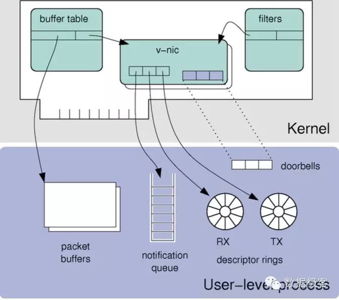 3) 数据拷贝次数少:内核中的数据包采用mmap技术映射到用户态。所以数据包在到达用户态时,不需要进行数据包的拷贝。