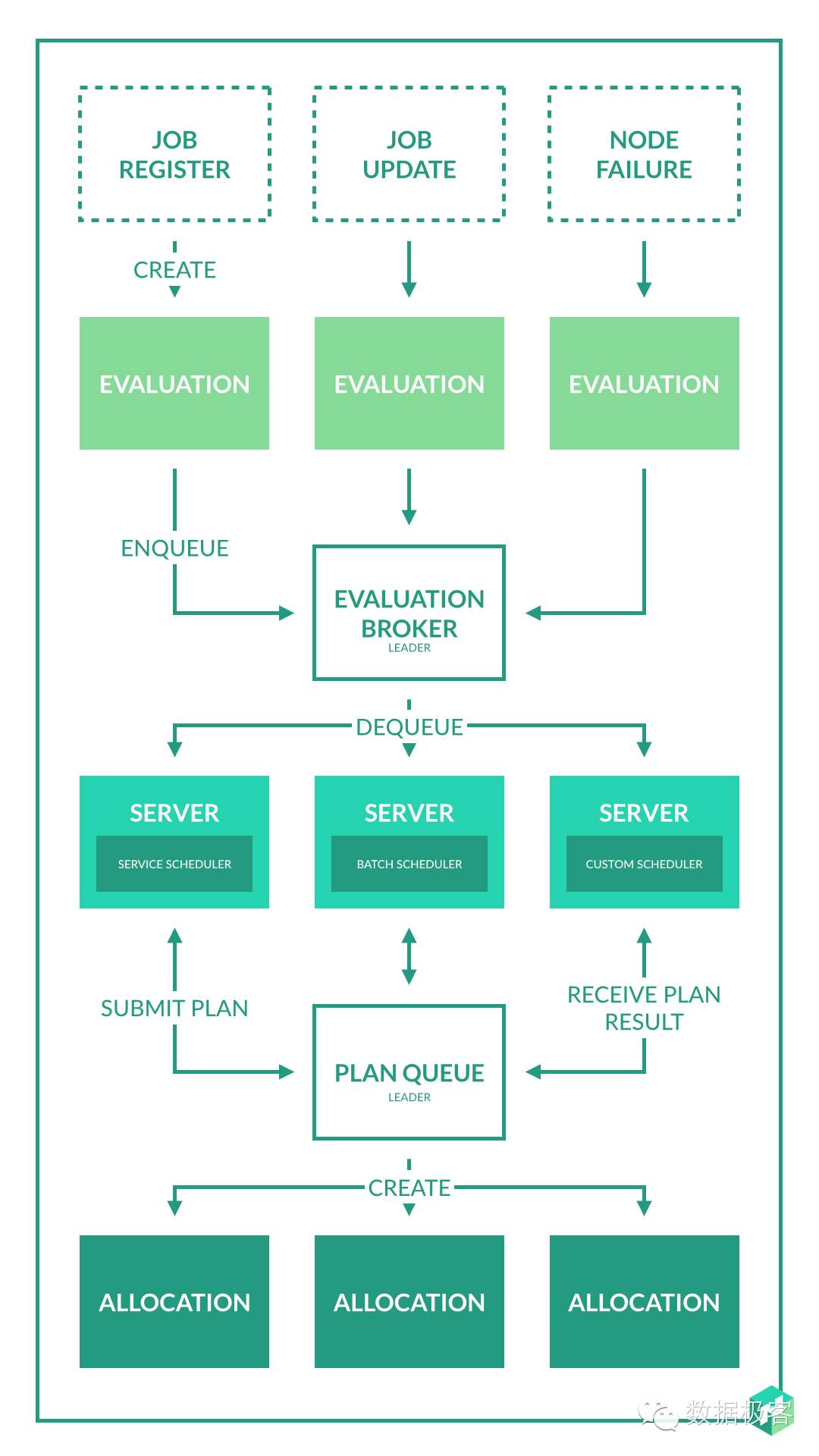 下面谈一下Nomad能被称为集群资源管理系统的核心——调度器的设计,架构如下图所示: