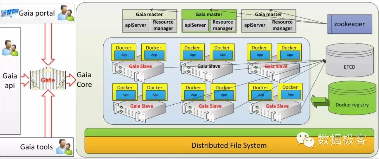 我们知道腾讯基于Yarn实现了自己的集群资源调度系统Gaia并应用于万台物理机的大型集群,如下图中间部分就是Yarn。