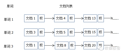 如图可见,倒排索引的构成分为2个部分,左边叫做词典,右边叫做文档列表,又称为posting list,搜索的过程就是找到词典的条目,并提取出文档列表从而继续求交或者求和,然后根据排序返回top文档的过程。